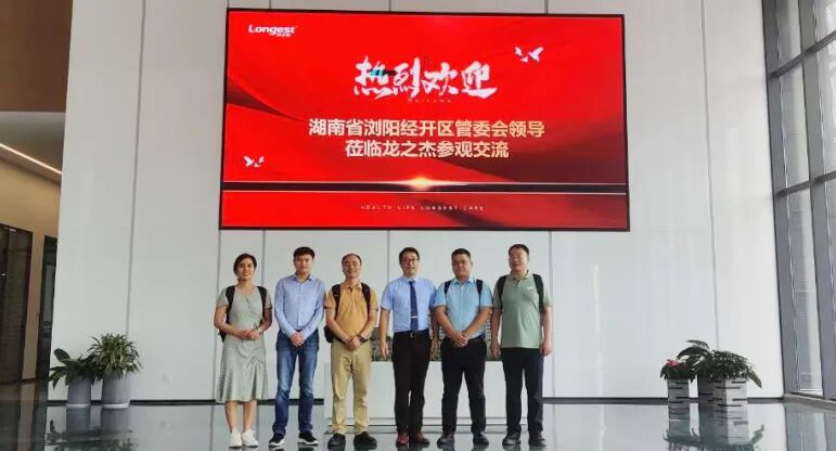 国家级浏阳经开区(高新区)金阳智中心领导一行在参观过程中,对园区的项目规划和建设速度大为赞赏,对龙之杰的康复及养老体系产品研发、生产等给出了高度的肯定。